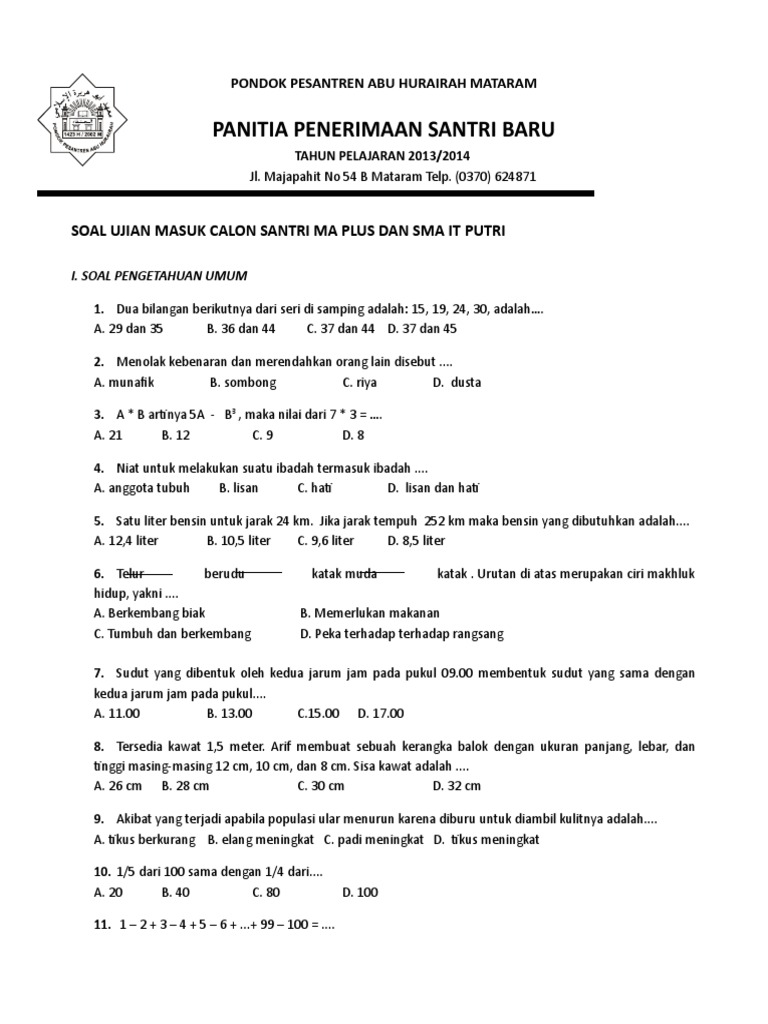 Soal Tes Masuk Smp 2021 : Soal Ujian Sekolah Smp Mts 2021 For Android Apk Download / Jan 21, 2021 · latihan soal tps utbk sbmptn tahun 2020 2021 pdf.